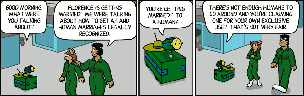 Niomi: Florence is getting married! We were talking about how to get a.i. and human marriages legally recognized.