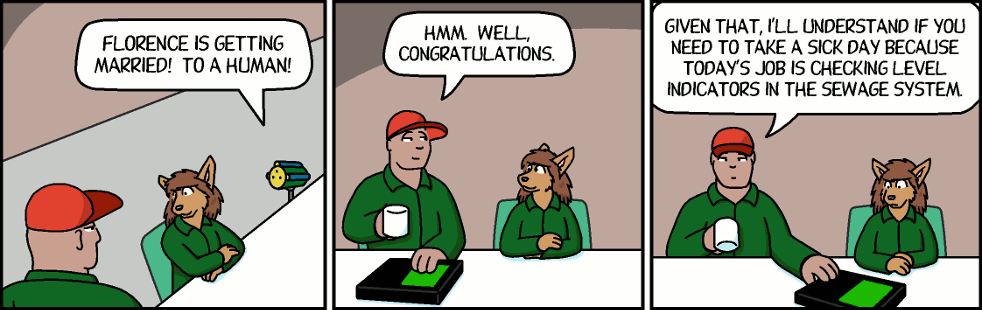 Capp: Given that, I'll understand if you need to take a sick day because today's job is checking level indicators in the sewage system.